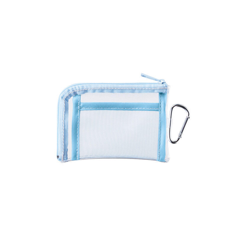 カラビナと内ポケットが付いたコンパクトなメッシュポーチ