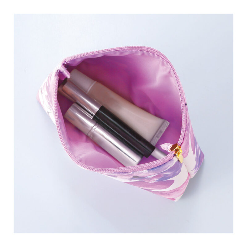 アテリア・ポーチは、サフィアーノ調の生地に華やかな花柄をプリントしたコンパクトなポーチです。 可愛らしさと上品さを兼ね備えたデザインで、持ち運びにも便利です。