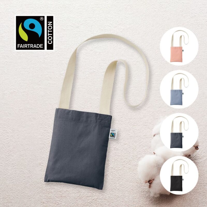フェアトレードコットンサコッシュスモークブルーは、ベーシックな形の縦長サコッシュです。厚みのあるコットン素材は丈夫で扱いやすく、中身が透ける心配もありません。ちょっとしたお出かけにピッタリのサイズ感がポイントです。