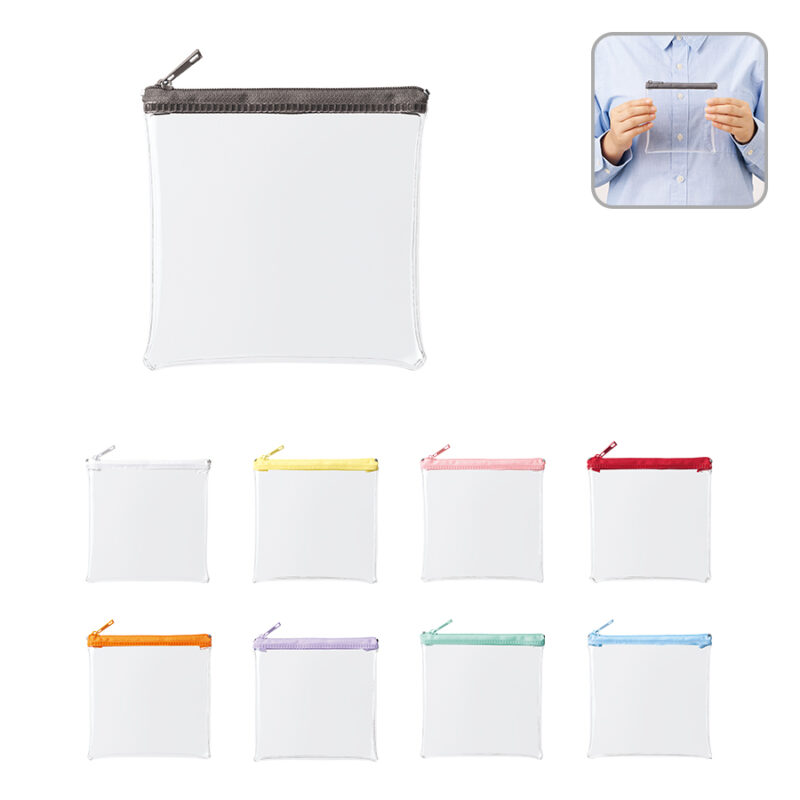 カラーファスナークリアポーチ(S) ライトピンクは、ファスナー部分のカラーが異なるデザインが特徴のクリアポーチです。縦130mm×横140mmのサイズで、小物入れとしてぴったり。