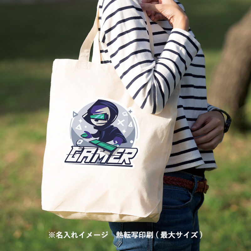 コットンバッグ(M) ナチュラルは、薄手のコットン製トートバッグです。360mm×370mmのサイズはA4の書類などがちょうど入る大きさ。