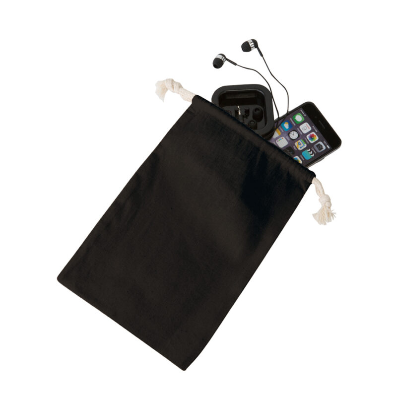コットン巾着(M) ブラックは、メイク入れなどのちょうど良い大きさの巾着です。ベーシックかつシンプルなデザインで、幅広い層の方にお使いいただけます。