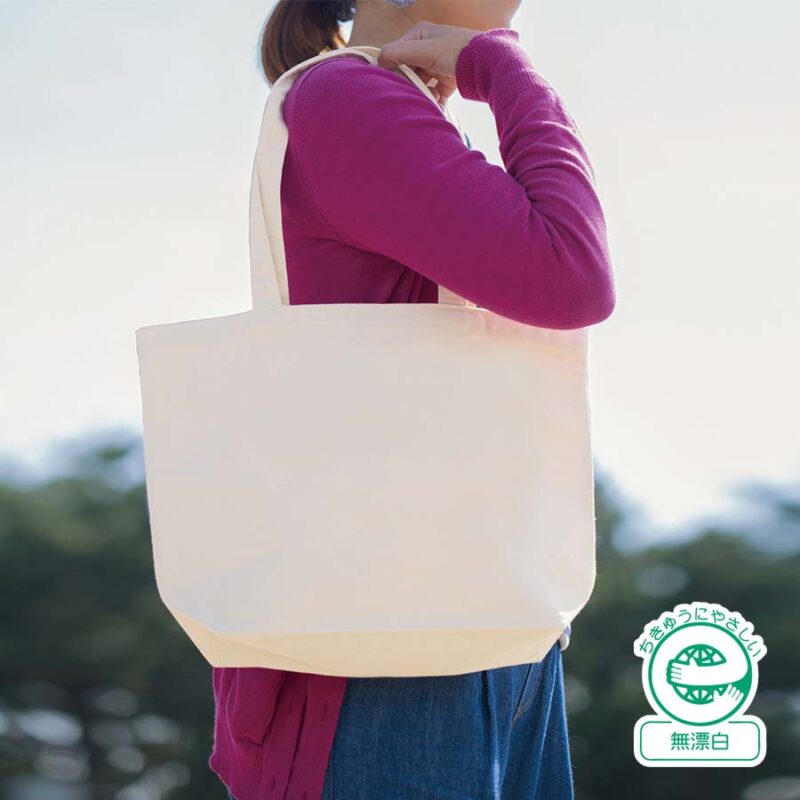 キャンバスファームトート ナチュラルは、バッグの間口が広い横長タイプのトートバッグです。A4サイズの資料などが横向きに入る大きさで、約120mmのマチがあるため厚みのある荷物も入ります。