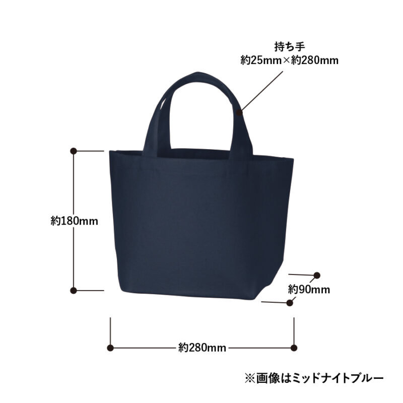 キャンバスデイリートート(S) スモークピンクは、ランチバッグにちょうど良いサイズのトートバッグです。サイズが縦180mm×横280mmで、約90mmのマチ付きです。
