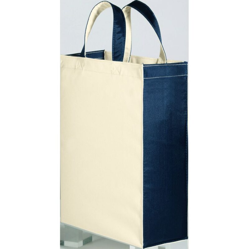ユーティリティバッグコンビ(M)2 ネイビーブルーは、持ち手と側面のカラーが違うデザインです。縦長の形状で約100mmのマチがあるため、資料やノートなどの持ち運びに最適です。