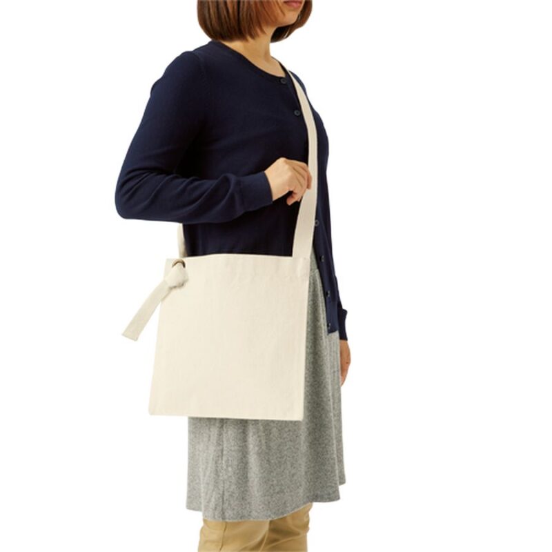 キャンバススクエアサコッシュ ナチュラルは、持ち手を通すハトメが付いたサコッシュです。カジュアルな印象のデザインながら、口元にはホック付きで生地は10オンスの厚手キャンバスと機能性にも配慮されています。