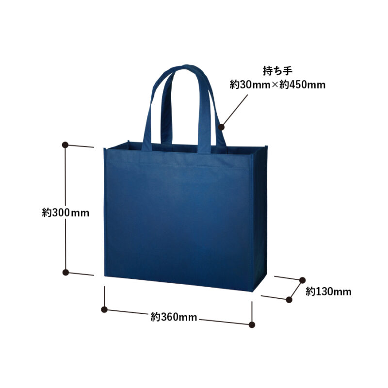 再生不織布スクエアトート ナイトブラックは約14L入る大きめバッグ。大きなマチ付きなのでA4ノートや書類だけでなく食料品も入ります。横に広くて肩から下げられるのでとても便利。環境負荷削減の観点からエコマークの認定を受けています。
