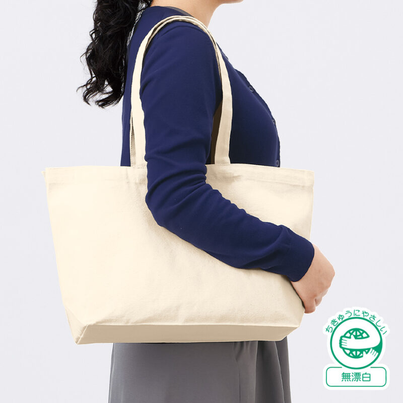 丈夫で収納力の高い横長タイプのコットンバッグ