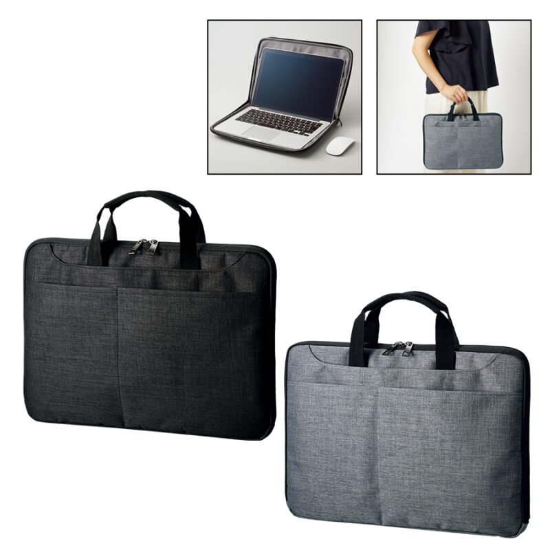 ハンドルがしまえるPCバッグ グレーは、ハンドルが出し入れできるPCバッグです。持ち運びたいときはハンドルを出してバッグとして使用、PCを使いたいときはハンドルをしまえばPCケースとしてご使用いただけます。前面には大きなポケットが付いています。