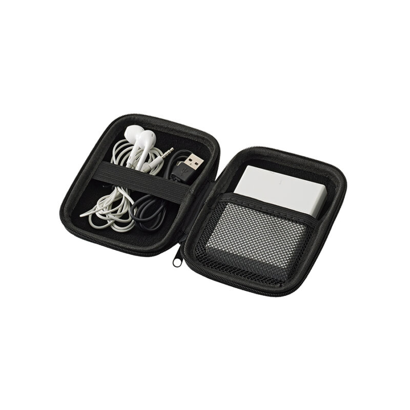 モバイルアクセサリーケース(S) ネイビーは、モバイルアクセサリーを収納できるケースです。メッシュポケットとバンドが付いているので、ケーブルやイヤホンなどの小物を整理整頓できます。