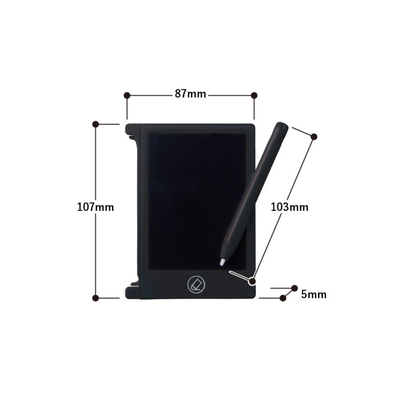 電子メモ 4.5インチ ホワイトは、ポケットに収まるミニサイズの電子メモです。繰り返し使えてエコなアイテム、ロック機能付きでメモが消えないようにすることができます。マグネットシール付きで、冷蔵庫などにも貼ることも可能。