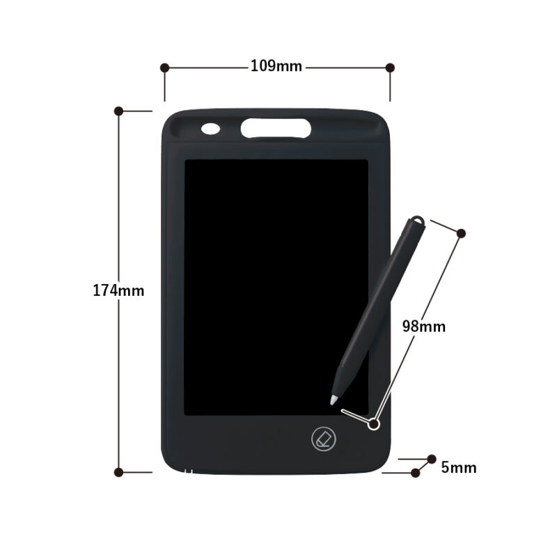 電子メモ 6.5インチ ブラックは、スマホサイズの電子メモです。大きさは6.5インチ、カバンに入れて持ち運びしやすいサイズです。ロック機能つきでメモを一時的に保存、ボタン1つでサッと消去できます。繰り返し使えるエコなメモ帳、タッチペンとマグネットも付いています。