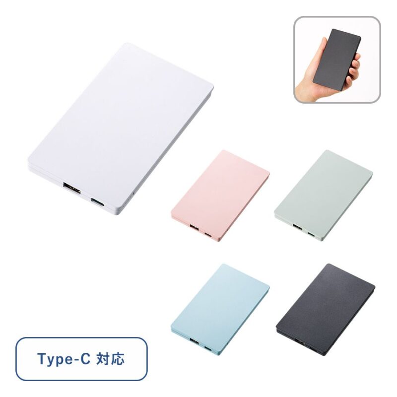 全面印刷できるモバイルチャージャー4000フラット ブラックは、2つの出力ポート付きモバイルバッテリーです。複数端末を同時に充電できるだけでなく、残容量も確認できます。