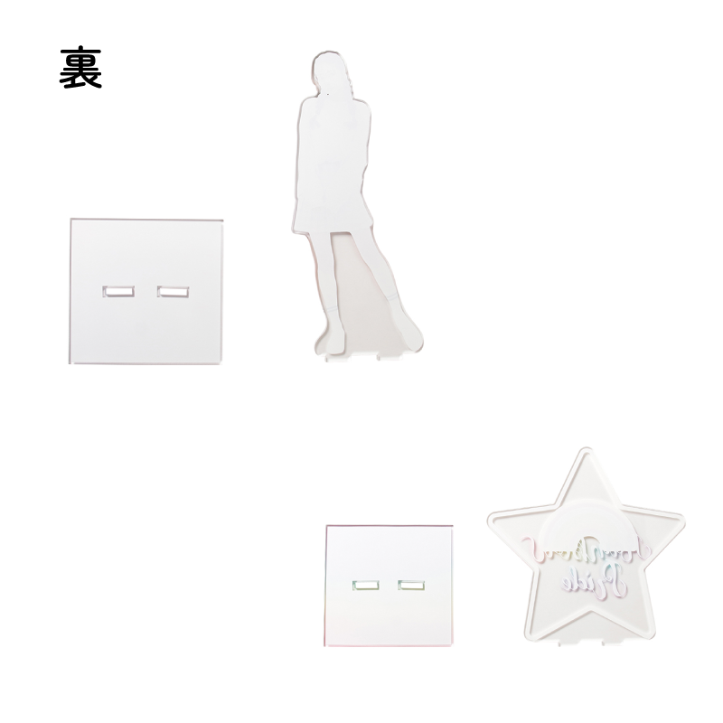 組み立てタイプのアクリルスタンドです。サイズが縦260mm×横210mm×厚み3mmあります。