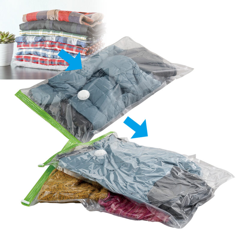 吸引ポンプ付圧縮袋は、強力な吸引ポンプが付いた圧縮袋です。しっかりと圧縮できるため、衣類やタオルなどがコンパクトに収納できます。コンパクトサイズの吸引ポンプなので持ち運びも便利。圧縮袋は2サイズ×2枚ずつ入っています。