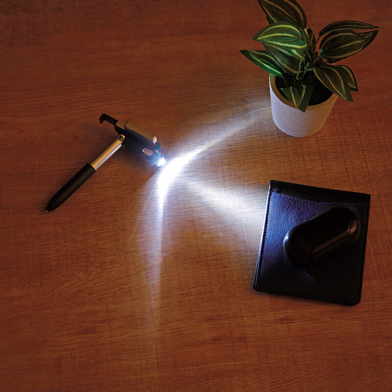 多機能パズルボールペンは、パズル・ライト・ボールペンが1つになった多機能なアイテムです。ペン上部には9ピースのパズルが付いています。パズルはオリジナルデザインが印刷可能。ペンの反対側にはライトが付いており、暗い場所でも使用できます。