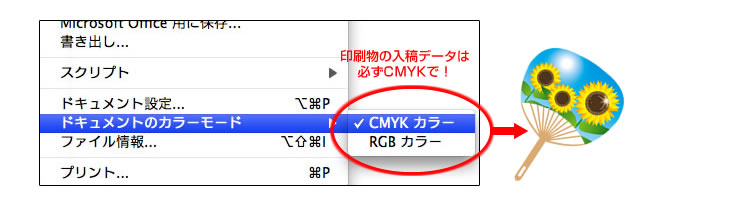 あらかじめCMYKのドキュメントモードで作成しましょう。