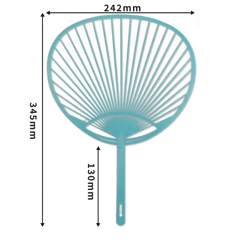 ライトブルーのうちわ骨1本と、A4サイズのうちわシール3枚がセットになった、カラーのレギュラーサイズの手作りうちわキットです。